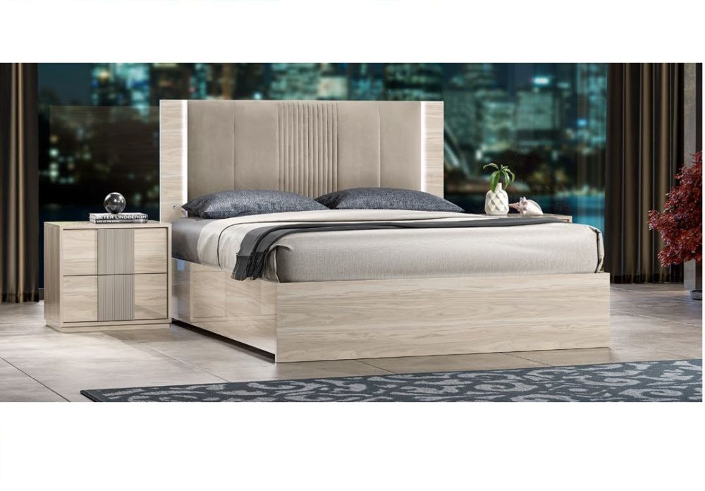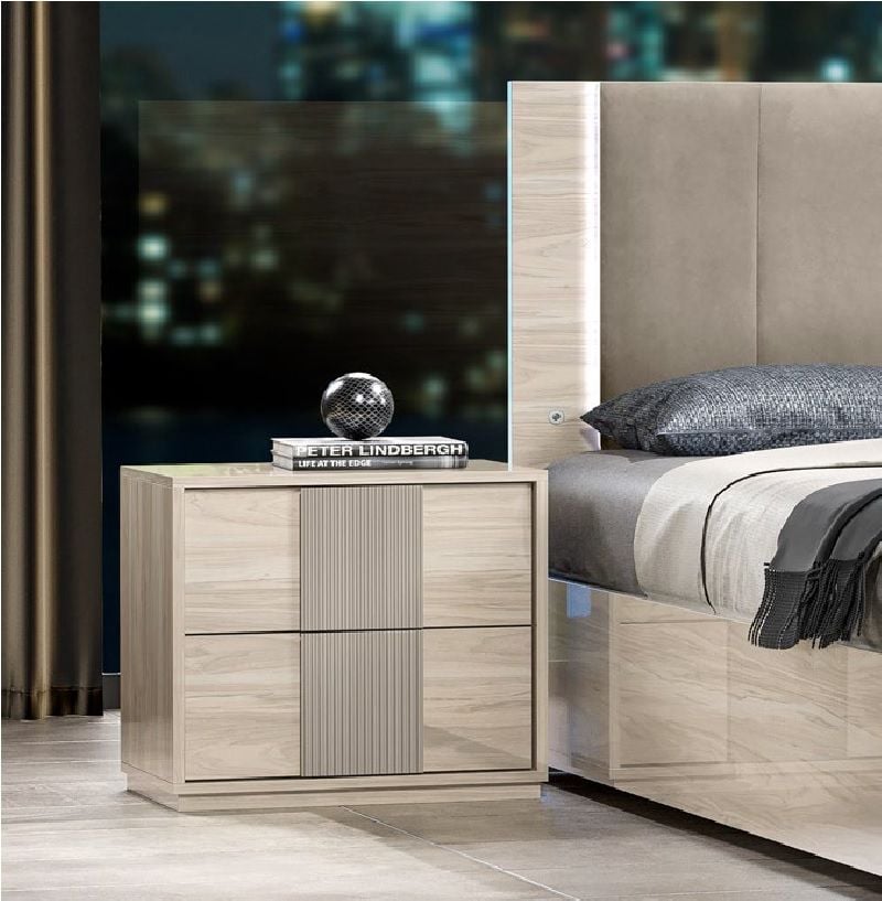 Dafne Italian Night Table made from quality Italian material with Beige Van Guard finish with contrast handle gives a fantastic contemporary look which will complement or transform most modern bedrooms and will suit a variety of different decors. Its 2 drawer design for storing your belongings inside and roomy top surface is ideal for your reading lamp, mobile phone or alarm clock radio.