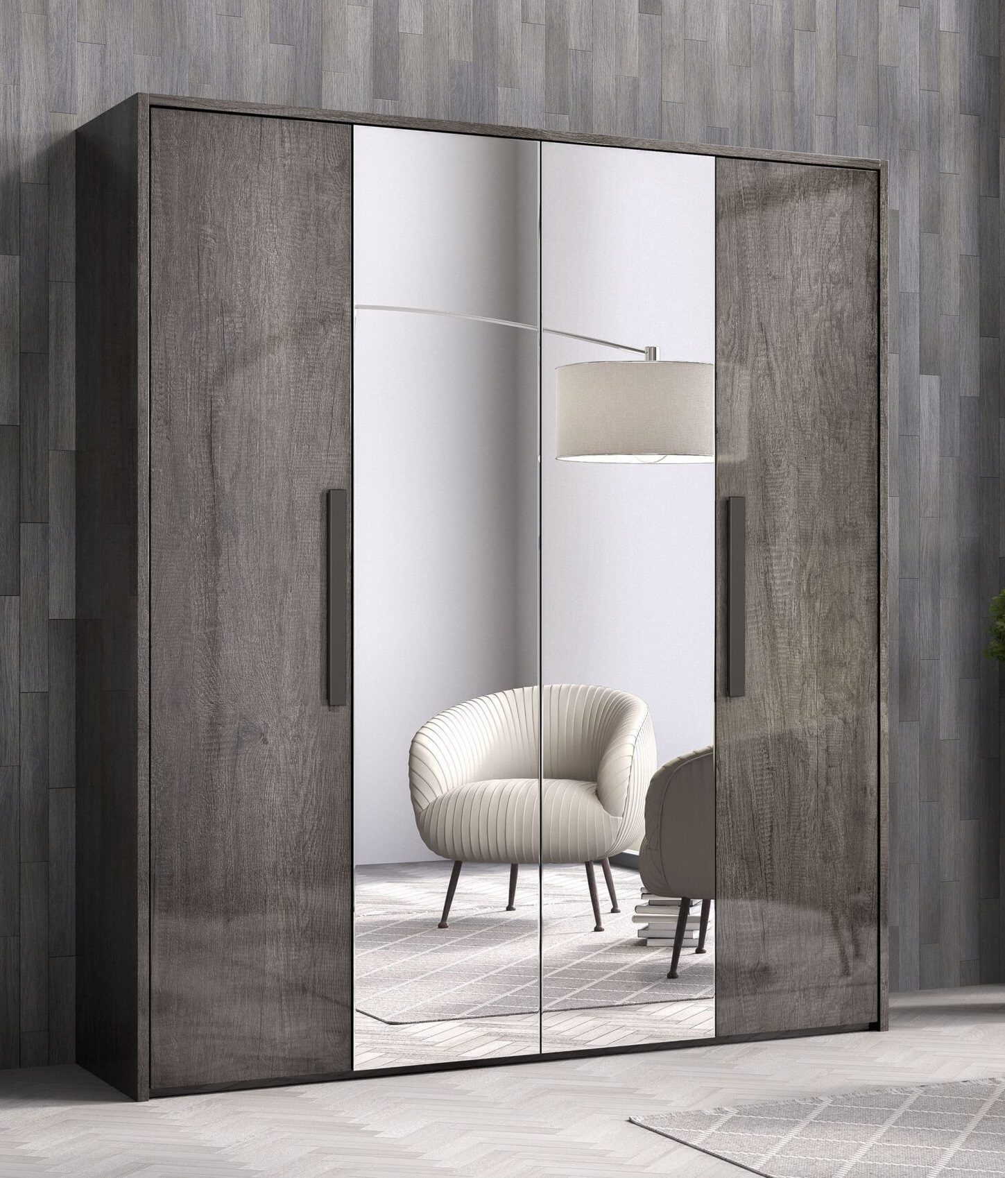 Divina 4 Door Wardrobe is a contemporary design perfect for the modern home and provides a sophisticated look to your bedroom. Made from quality Italian material with Canyon Oak Glossy finish with matching handle gives ideal versatility and brings a fresh look to your bedroom. Its 4 doors inside a full depth shelf as well as a full width hanging rail to keep all your clothing tidily arranged. Featuring a full length mirror which is perfect for when you are getting ready to go out.