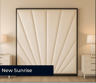 Make a breathtaking statement in your bedroom with the New Sunrise Headboard – a truly distinctive design inspired by the beauty of light breaking across the horizon, bringing striking shape, depth and artistic flair to your sleep space. Defined by its grand, commanding silhouette and bold geometric form, this headboard features a sleek, contrasting dark outer frame that beautifully outlines the design, creating a sharp, sophisticated border that enhances its impact and gives it a polished, gallery-worthy appearance.