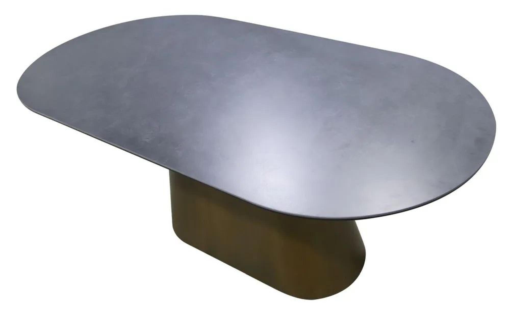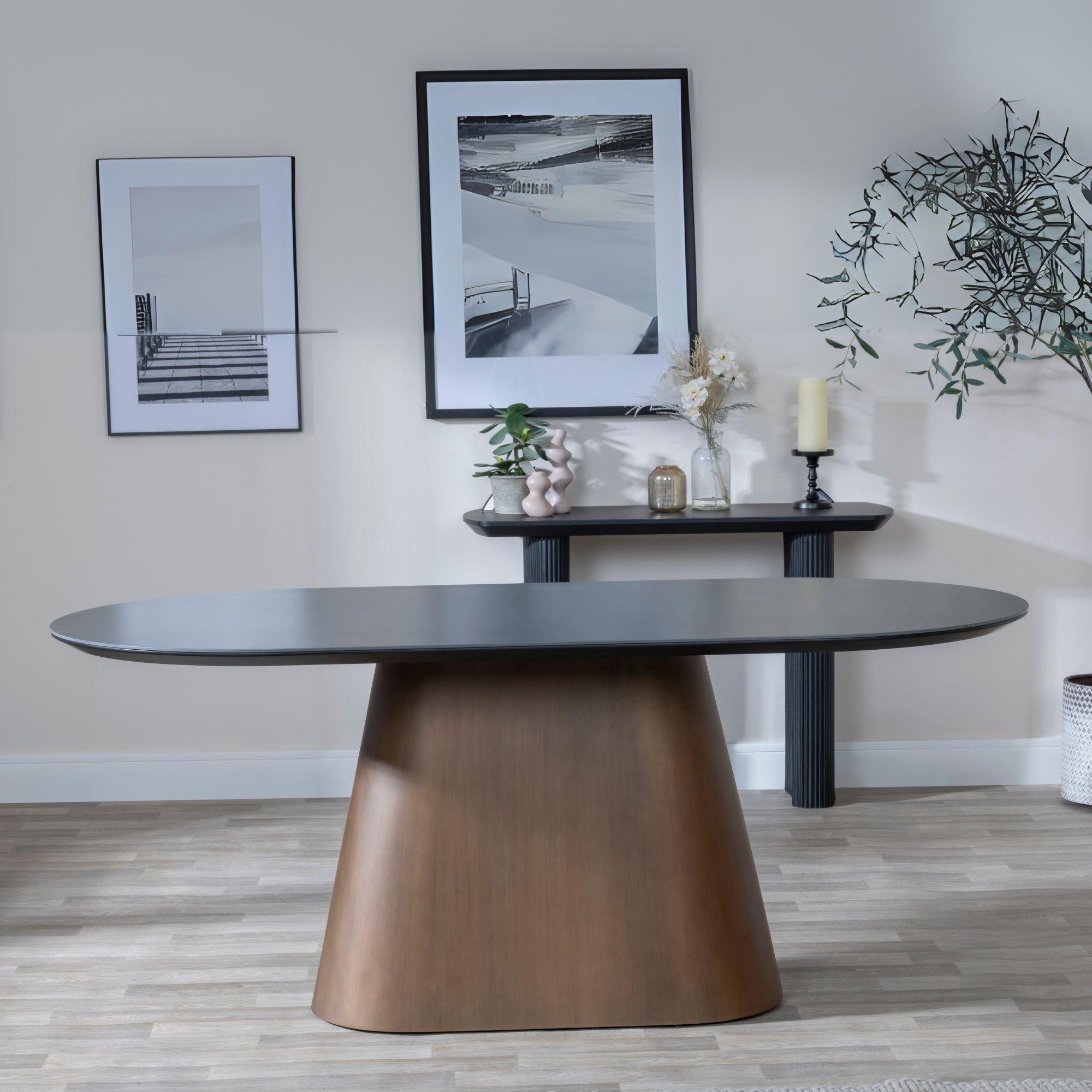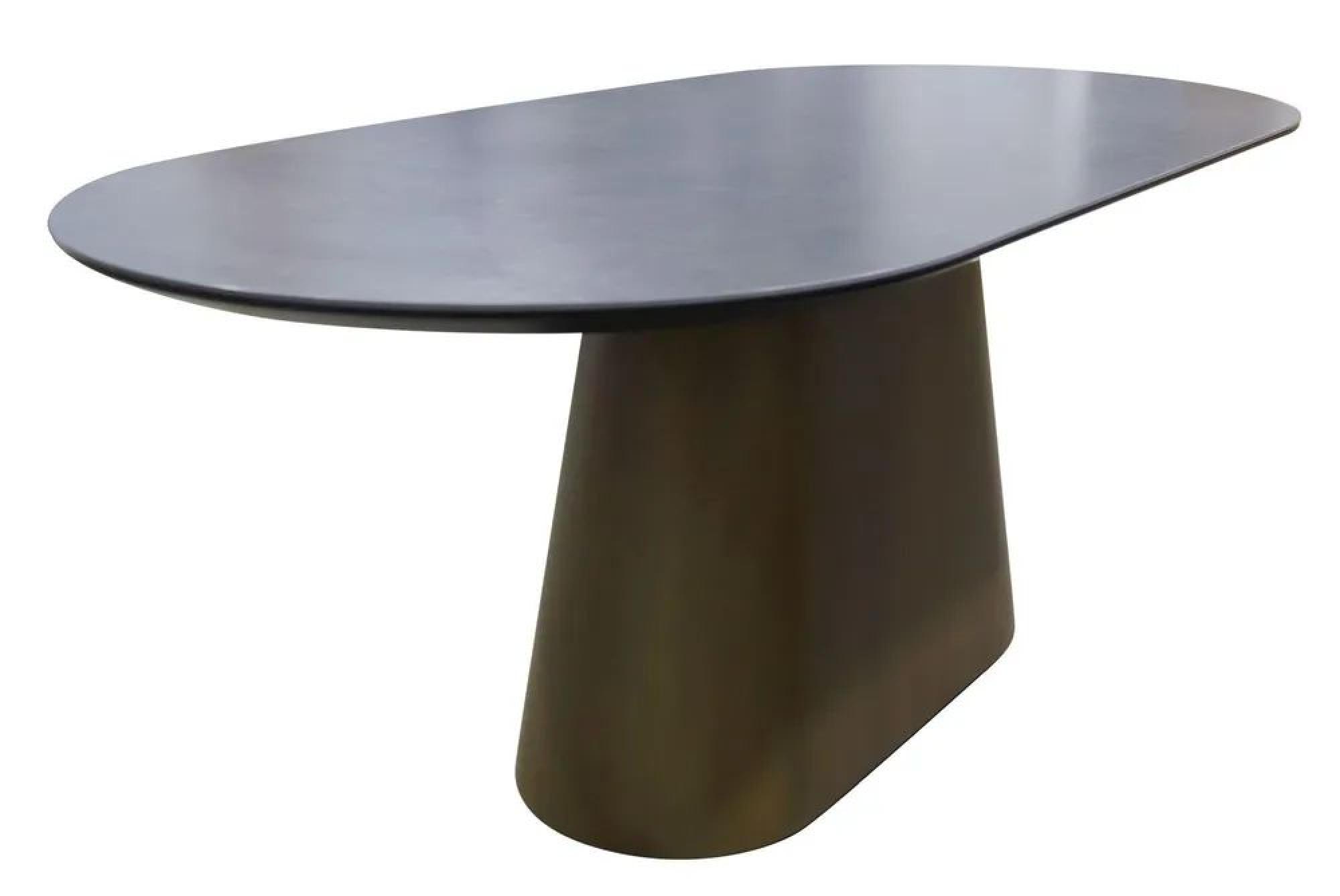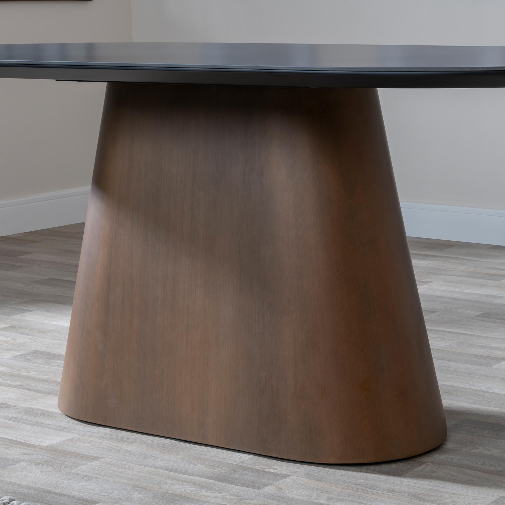 Perlo 180cm Dark Grey Ceramic Oval Dining Table With Bronze Pedestal BasePerlo 180cm Dark Grey Ceramic Oval Dining Table With Bronze Pedestal Base