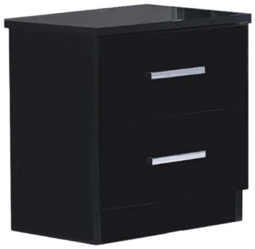 Simona Black Italian 2 Drawer Bedside Cabinet