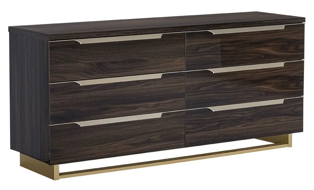 Smart Walnut Italian 6 Drawer Wide Chest